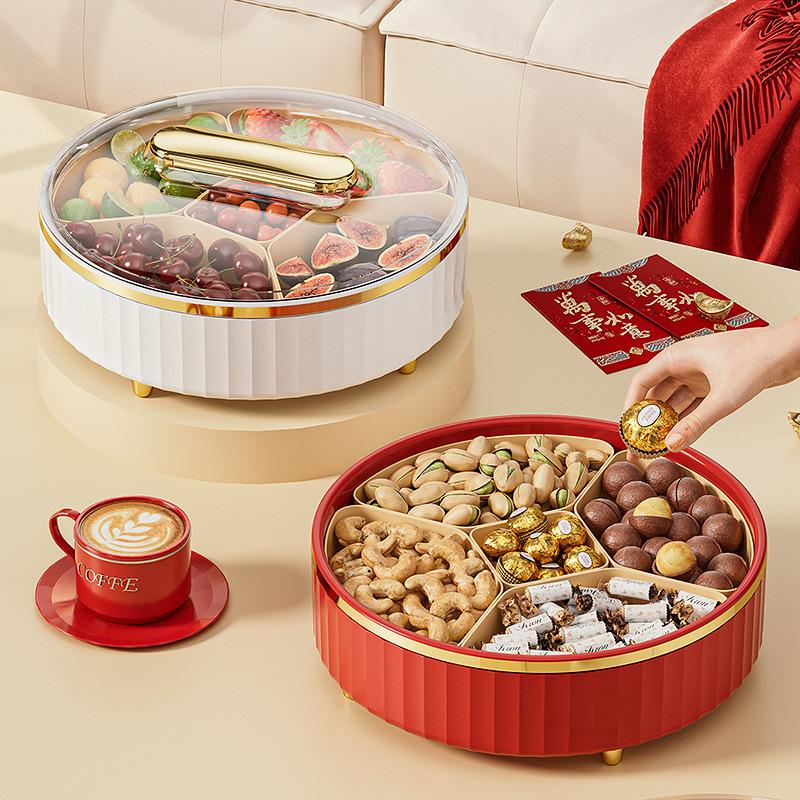 Candy Box Home Living Room Candy Plate Dried Fruit Box Grid With Lid Fruit Plate Rotating Dried Fruit Plate Happy Candy Box