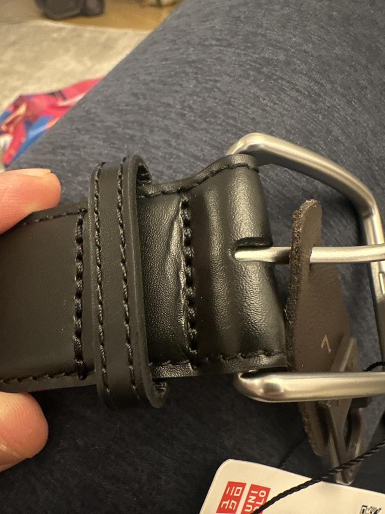 The UNIQLO Stitch Middlewise Belt features a wide design that stands out yet maintains a clean look. Made from high-quality cowhide, this product boasts excellent durability. Both the front and back are crafted from cowhide for a comfortable wearing experience.