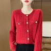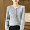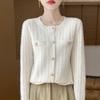 New Autumn and Winter Style Pure Wool Round Neck Knitted Cardigan for Women's Fashionable Versatile and Comfortable Cashmere Sweater Jacket