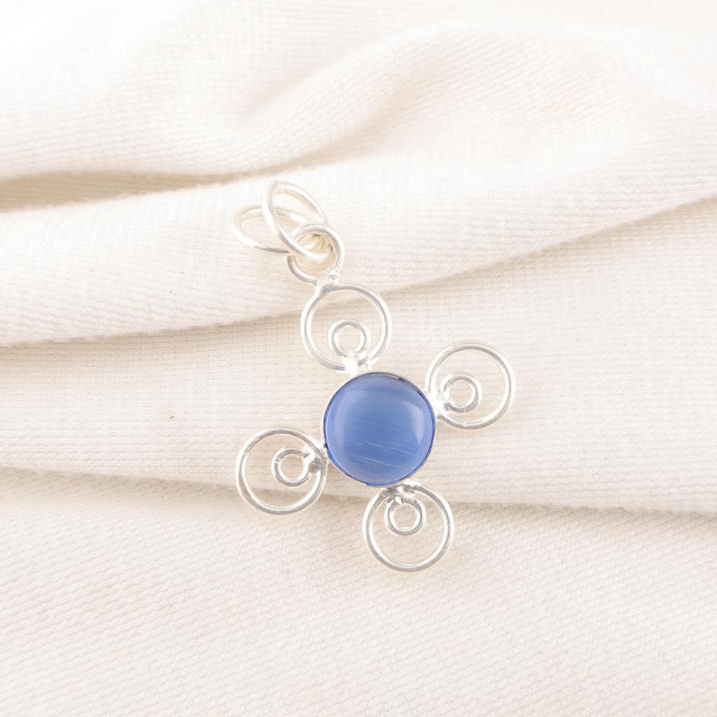 Dark Blue Cat's Eye Gemstone Pendant, 925 Solid Sterling Silver Jewelry, Handmade Designer Pendant Gift For Sister