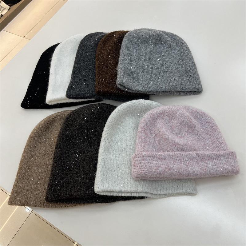 Thickened Silver Sequined Wool Double-layer Knitted Hat Children's Winter Warm Elegant Plain Literary Wool Stacking Hat