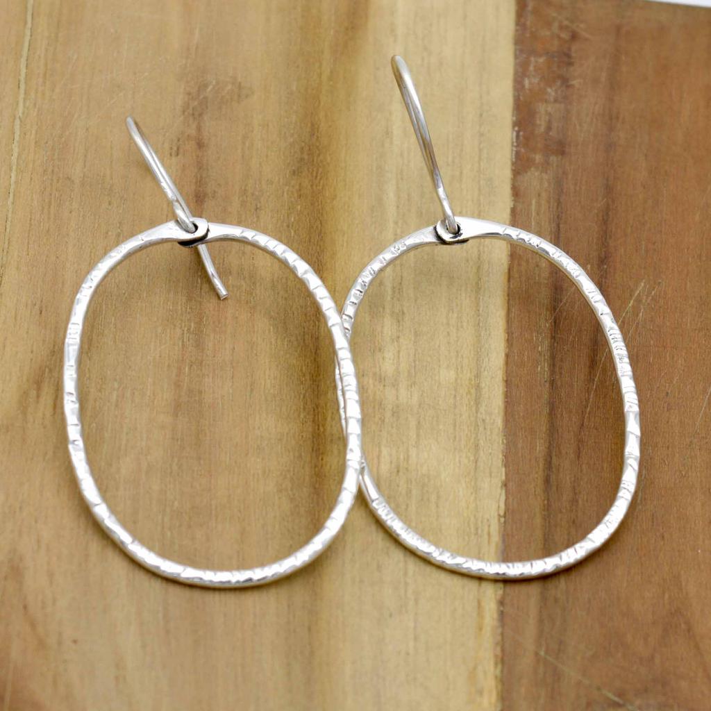 925 Sterling Silver Hammered Earrings, Handmade Oval Hoop Studs Earrings, Gift For Her