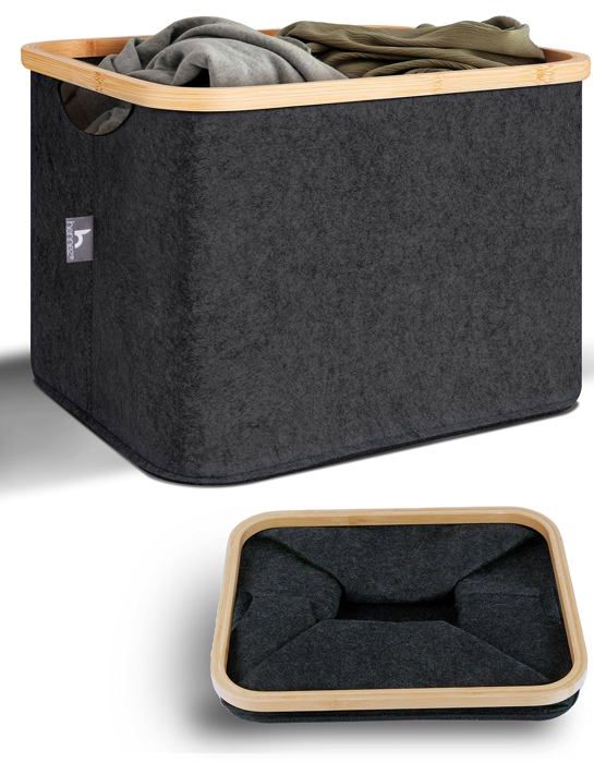 Panier de rangement - HENNEZ - Grand Panier Feutre 40L - Gris - Avec couvercle - Style contemporain