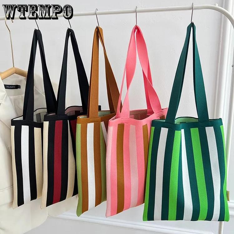 WTEMPO Striped Travel Handbags Stylish Chinese Style Underarm Single-shoulder Bags Ethnic Style Double-shoulder Knitted Bags