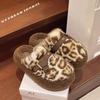 Leopard Print Fluffy Slippers Women's Winter Indoor Home Velvet Warm New Bag Head Thick Bottom Cotton Slippers Outer Wear