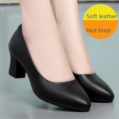 Women High Heel Shoes Ladies Pumps Fashion Soft Leather Professional Work Shoes Women Round Toe Thick Heel Shoes