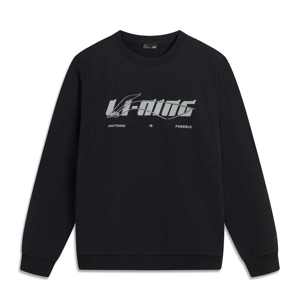 Li Ning Sports Lifestyle Series Round Neck Simple Loose Versatile Comfortable Letter Casual Sweatshirt Unisex Sweatshirt Black AWDVF77-2