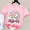Labubu Mokoko T-shirt for Children Cartoon Round Collar Tee Top New Boys Girls Clothes Cute Short Sleeve Kids Pink Clothing Gift