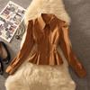 New Chic Design Niche Small Shirt with Waist Cinching French Long Sleeved Top Stylish
