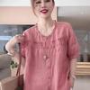 Fresh Pure Cotton Round Neck Shirt with Fungus Lace In Summer New Solid Color Five-quarter Sleeve Shirt Loose and Thin