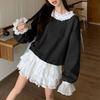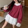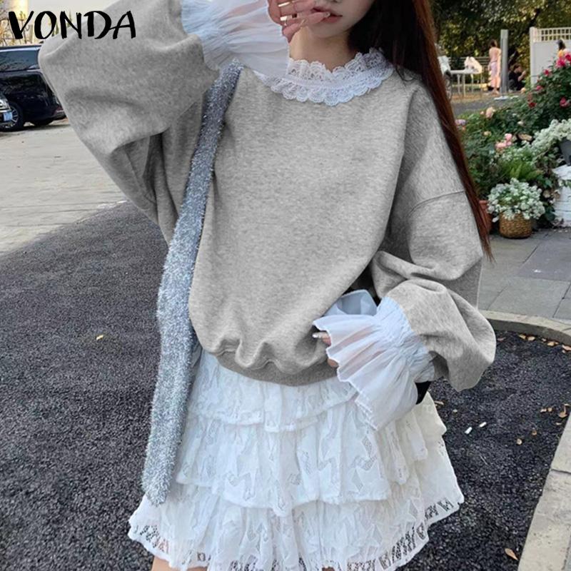 VONDA Women Lace Crochet Long Sleeve Patchwork Casual Pullovers Blouse