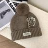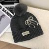 Big Head Circumference Hat Autumn and Winter Pearl Bow Big Hairball Knitted Wool Hat Cycling Hat