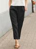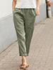 Women Summer Loose Long Pants Comfortable Cotton Linen Trousers Ladies Solid Color Double Pocket Casual Wear
