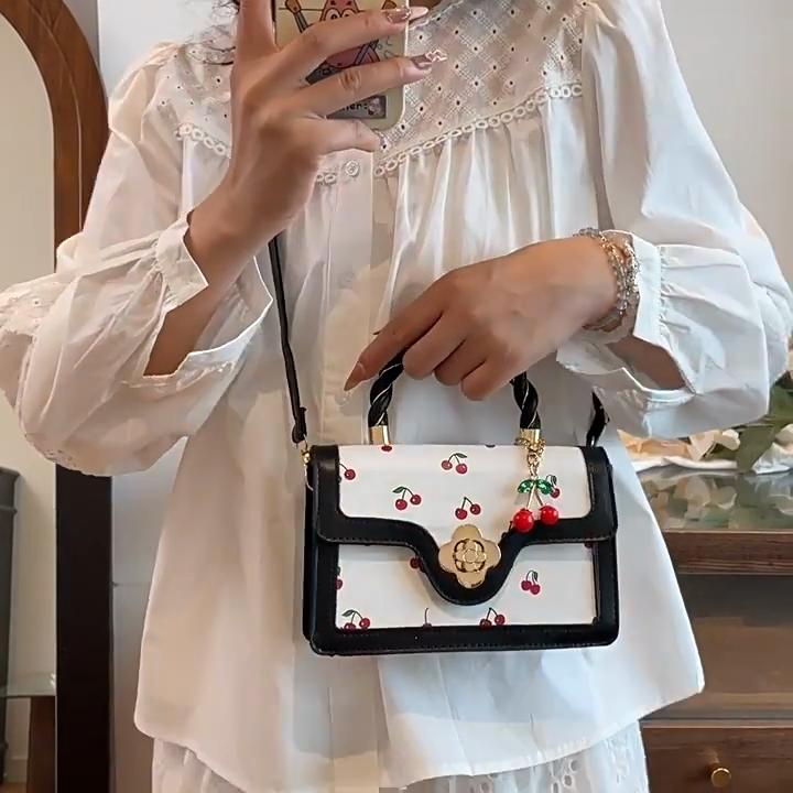 Women Cherry Square Bag PU Leather Sweet Cherry Crossbody Bag Adjustable Strap Sling Ladies Outdoor Small Handbags