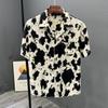 Summer Ice Shreds Fashion Ink Wash Painting Printing Large Size Men Short Sleeved Loose Handsome Youth Comfortable POLO Shirt
