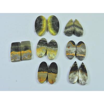 187Cts.Natural Bumble Bee Jasper Pair Mix Cabochon Loose Gemstone 08Pair Lot C-117