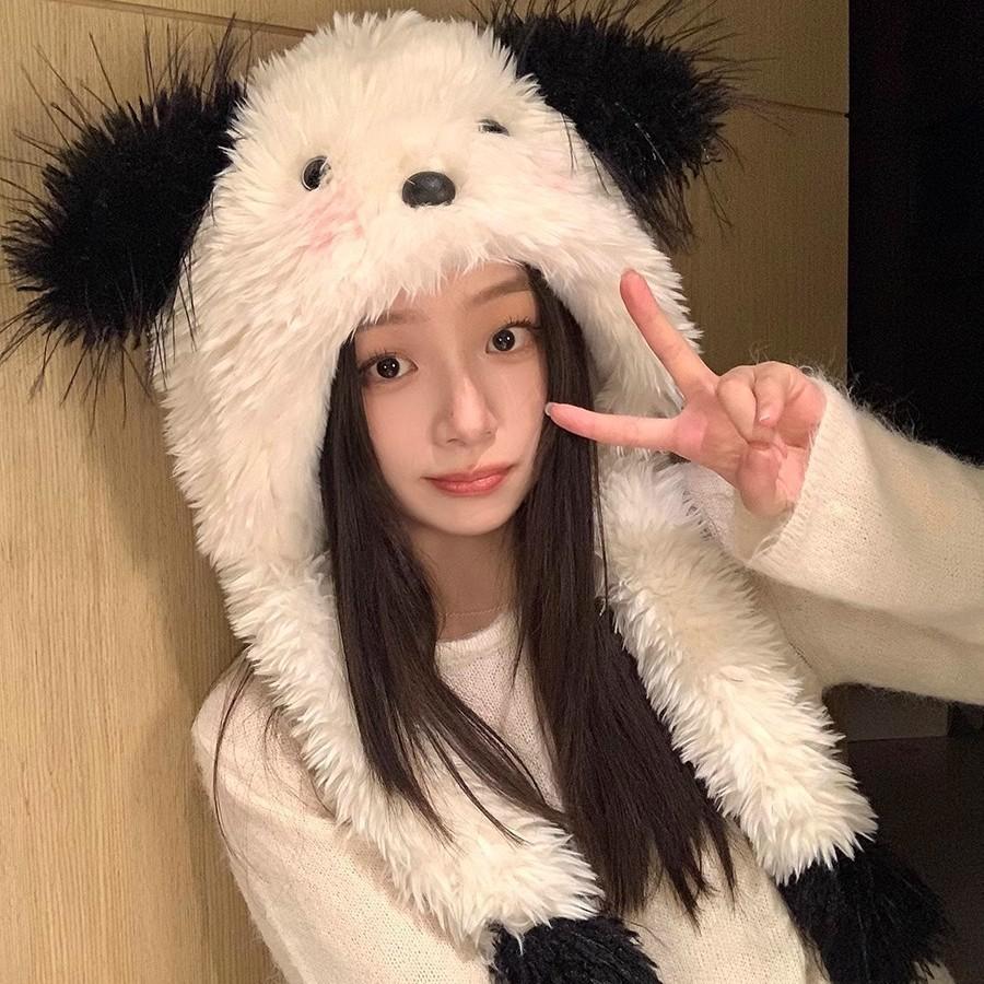 Winter New Cartoon Cute Plush Hat Female Thickened Warm Ears Will Move Puppy Big Head Circumference Plush Hat