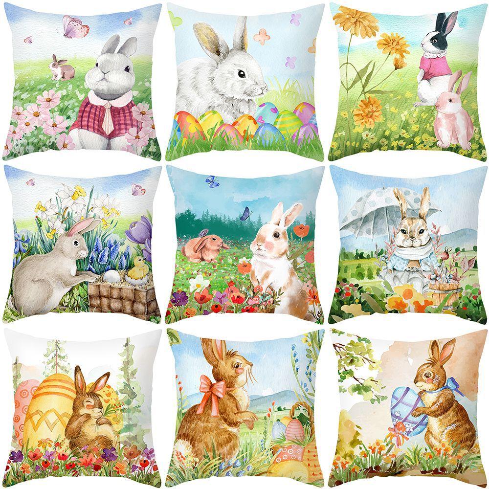 New Easter Pillowcase Watercolor Flowers Rabbit Home Pillow Cushion Cover