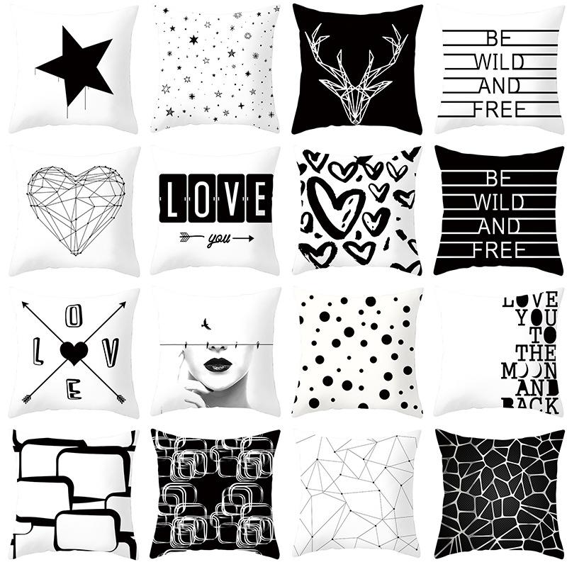 New Simple Black and White Plain Pillowcase Geometric Home Cushion Cover
