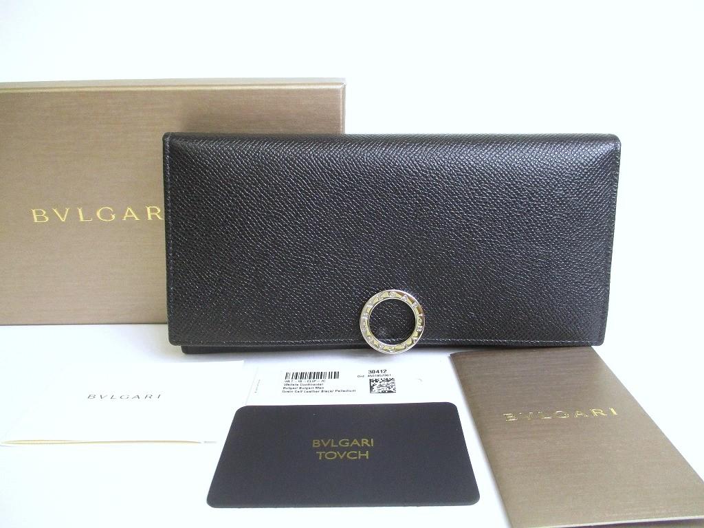 Product : BVLGARI Black Leather Logo Clip Flap Long Wallet #a800