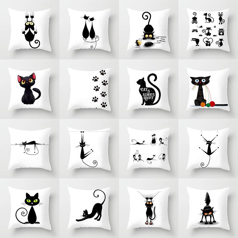 New Cartoon Black Cat Pattern Printed Pillowcase Home Sofa Pillowcase Cushion Cover
