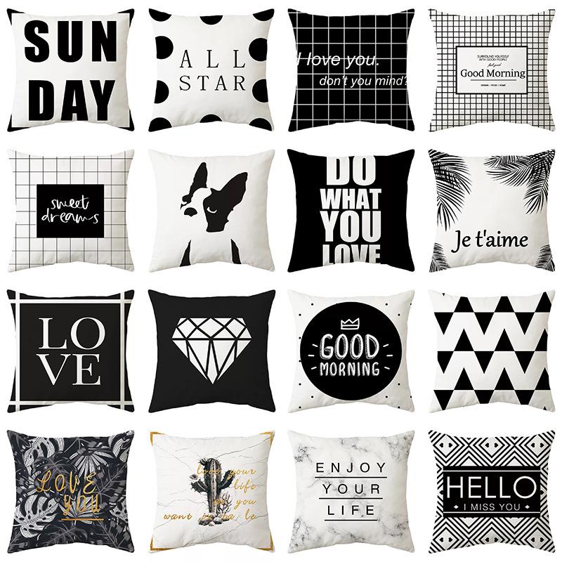 Nordic Black and White Simple Style Geometric Abstract Pillow Case Peach Leather Fleece Home Sofa Pillow Quilt Cushion