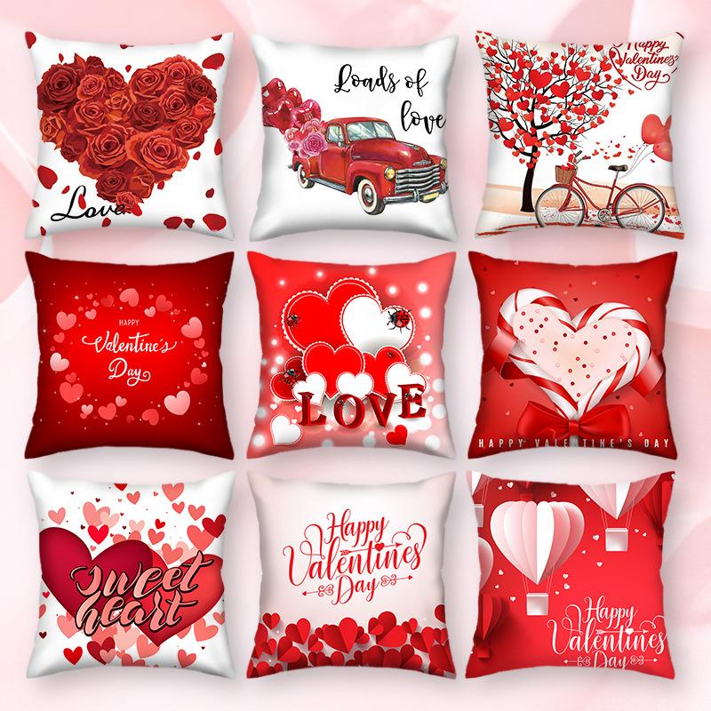Nordic Red Sofa Pillow Love Pillow Case Ins Style Flower Couple Wedding Hug Valentine's Day Decoration Pillow Case