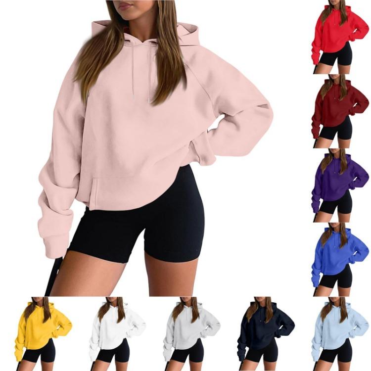 Plus Size Women's Velvet Hooded Sweatshirt Thickened Long Sleeve Pullover Solid Color Casual Autumn Fashion