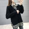 Spring and Autumn Lapel Women's Loose Lazy Style Stitching Fake Two-piece Pullover Sweater Bottoming