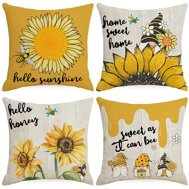New Sunflower Flowers Bee Printed Linen Pillow Case Car Sofa Bedroom Living Room Pillow Case