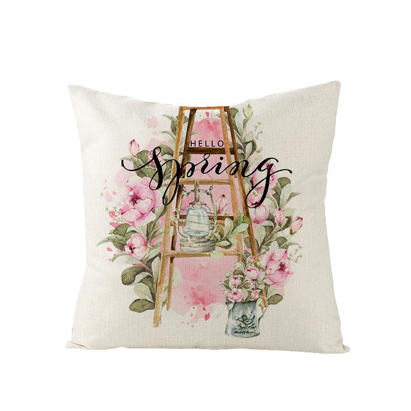 Spring Floral Pillowcase Linen Printed Sofa Pillowcase Pink Truck Bedroom Cushion Cover
