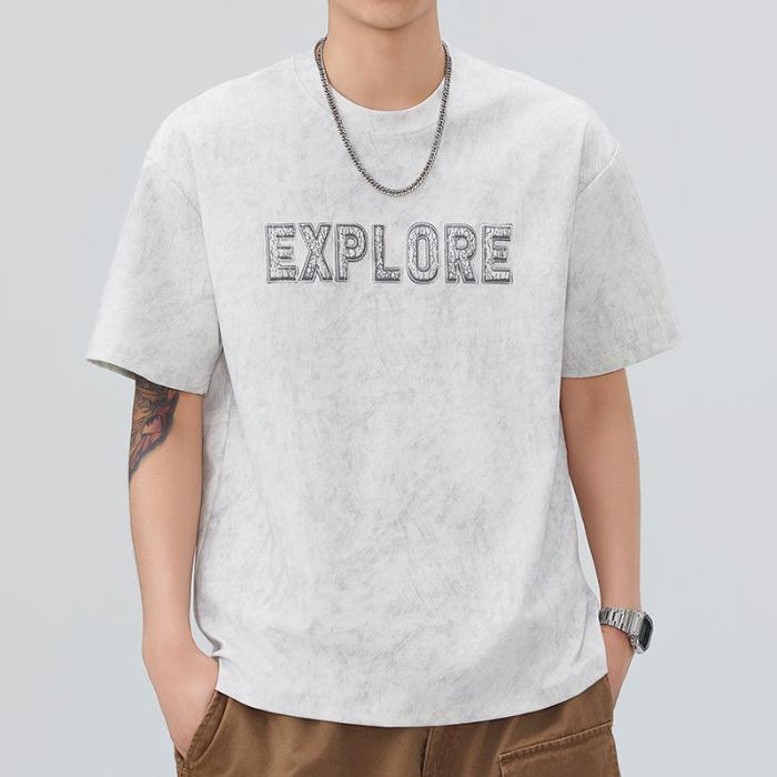 American Round Neck T-shirt Men's Loose Summer Frying Wash Water Foam Printed American Short Sleeves