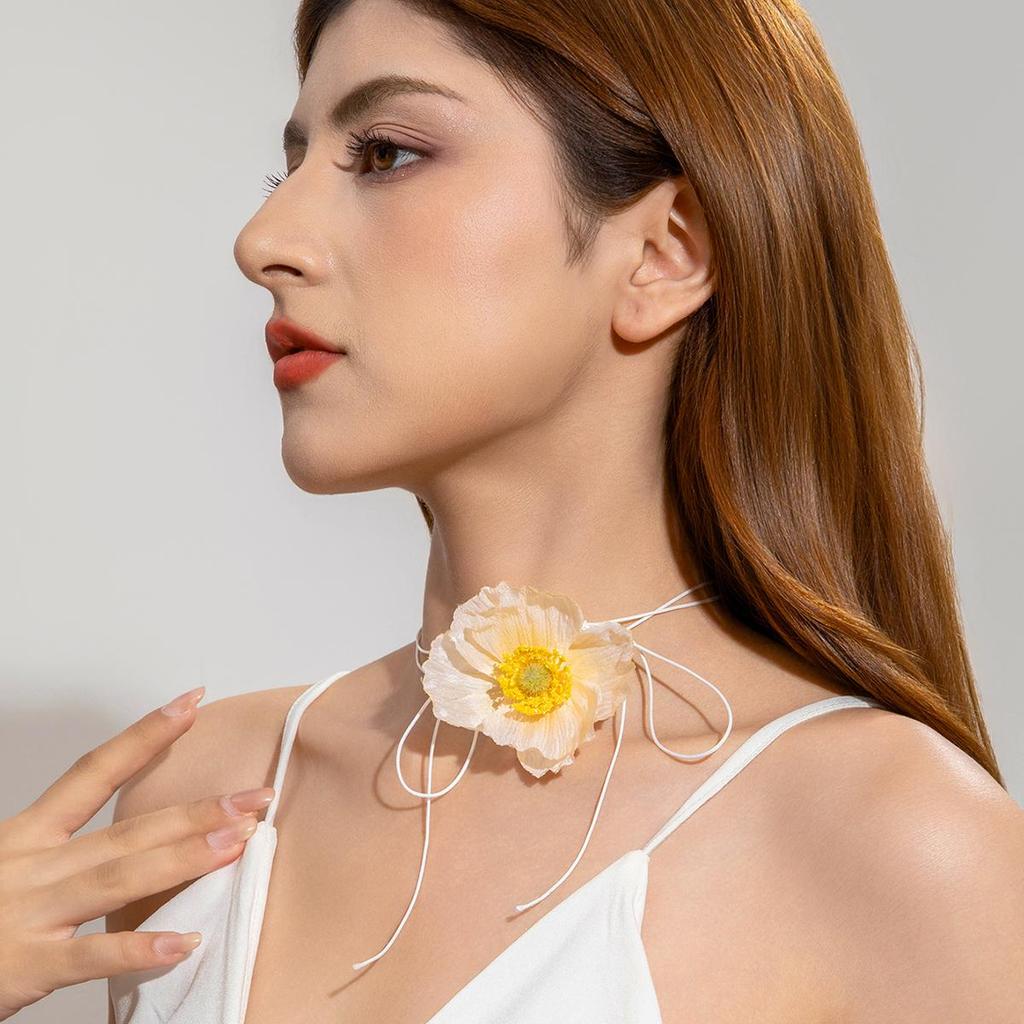 New Spring/Summer Collection, Fresh and Cute, Multi Color Fabric, Plum Blossom Pendant Necklace, Women's Jewelry Suitable for Beach Vacation Parties