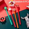 8/20 PCS Merry Christmas Water-based Pen Santa Claus Reindeer Tree Design 0.5mm Black Smooth Writing for Kids Students Office Supplies Back To School