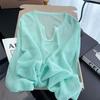 Women's Summer Green V-neck Knit Top Outer Wear Sun Protection Cover Up Dopamine Loose Outer Top