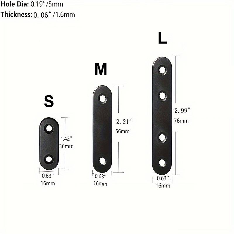 10pcs Black Metal Mending Brackets - Straight Corner Braces with 20pcs Flat Plate Straight Brackets and 40pcs Screws for Repair and Reinforcement