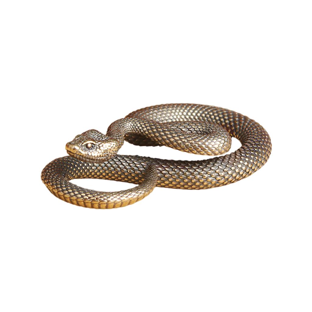 Brass Snake Figurine Keychain Pendant Charm Antique Animal Statue for Home Office Desktop Decoration and Bag Accessories