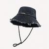 Old Rough Edge Bucket Hat Spring and Autumn New Retro Hat Women's Casual Versatile Basin Hat Washed Denim Hat