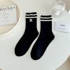 Women's Spring and Autumn Striped Boneless Mid Calf Cotton Socks