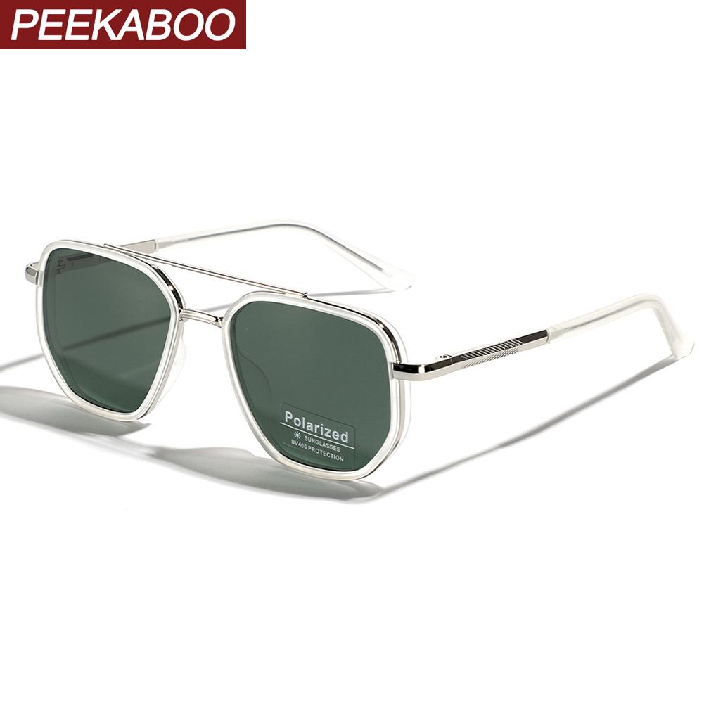 Peekaboo TR90 Polarized Sunglasses Men Retro Style Metal Square Sun Glasses for Women Double Bridge Driving Green Black Uv400