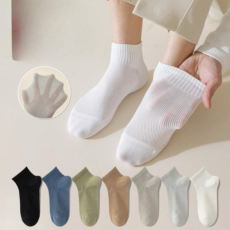 Men's Short Socks for Spring and Summer, Thin Pure Cotton Sports, Anti-odor, Sweat-absorbing, Mesh Breathable, Black Men's Shallow Mouth Boat Socks