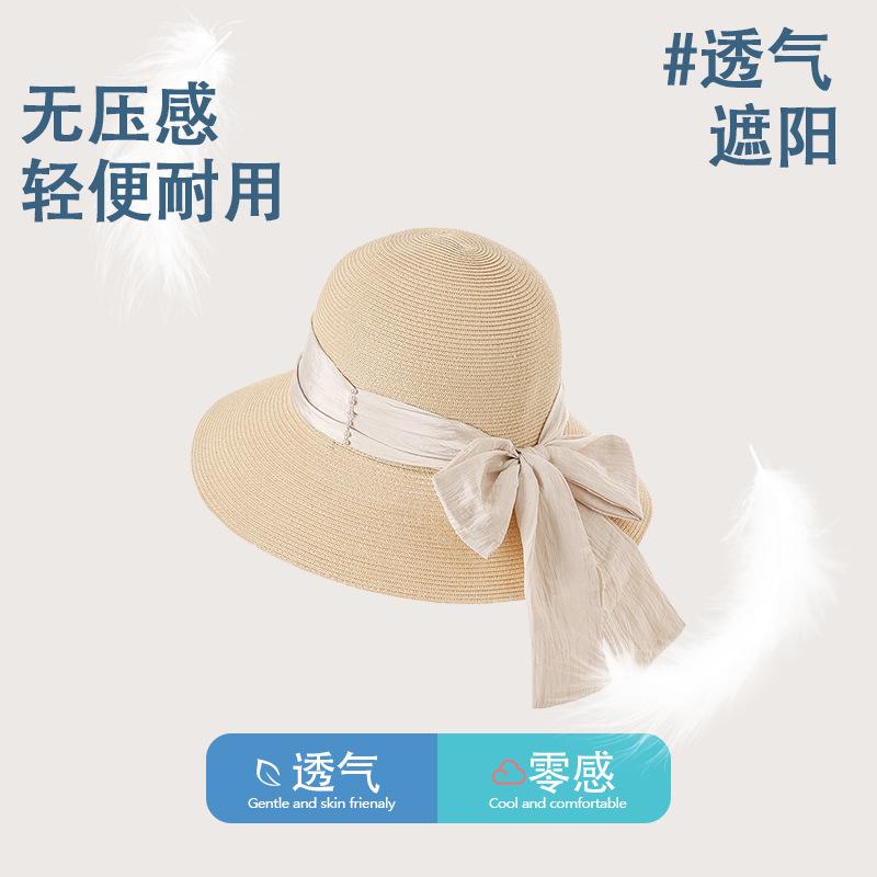 Hat Female Sunshade Sunscreen Raffia Straw Hat Outdoor Fashion Bow Streamer Bucket Hat