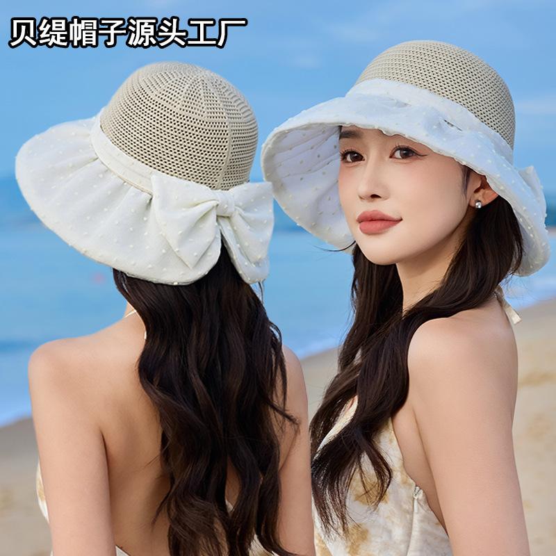 Summer Hat Female Grass Top Hollow Breathable Bucket Hat Bow Sun Hat Sun Hat