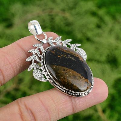 Oval Natural Bronzite New Sister Handmade Bezel Elegant Boho Pendant 925 Silver