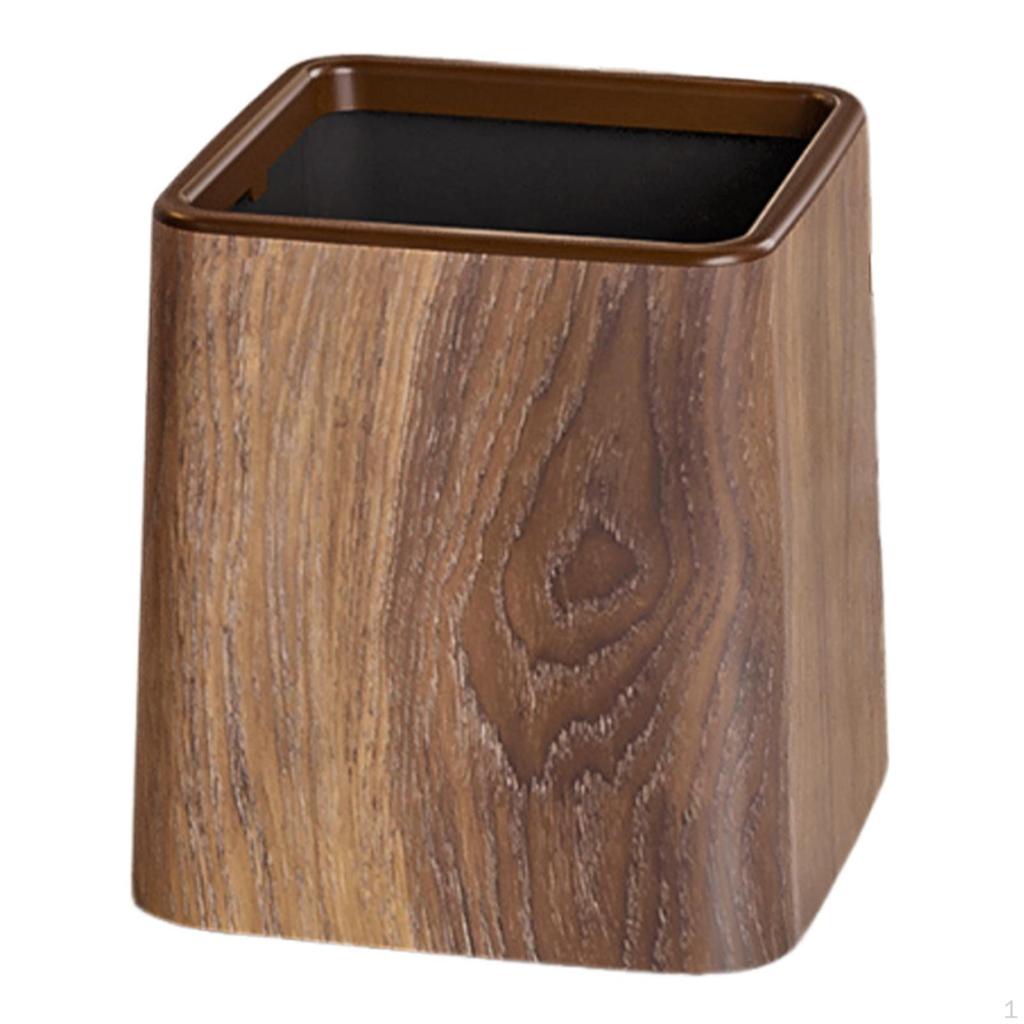 - 【Stylish Design】: Featuring an artificial wood grain finish, this small desk trash can boasts an elegant appearance that seamlessly blends with any interior decor