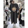Summer New Printed Short-sleeved T-shirt Dress for Women, Korean Style Loose and Casual Plus-size Flying Sleeve Dress Long Dress