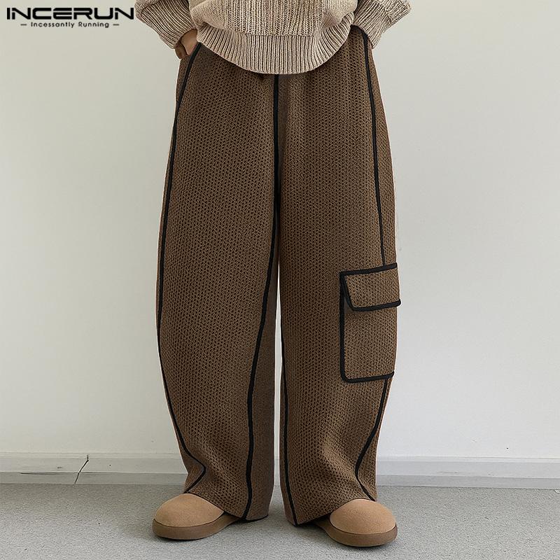 INCERUN Men Elastic Waist Trousers Casual Loose Stitching Texture Long Pants