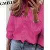 GMXIA Women's Fashion Casual Leisure Solid Color Print Long Sleeve V Neck Blouses & Shirts