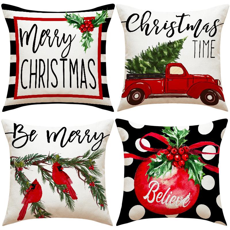 New Red Truck Christmas Pillowcase Linen Printed Pillowcase Festive Room Sofa Decoration Cushion Cover