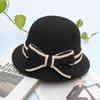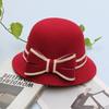 Retro Bow Woolen Hat Women's Autumn and Winter Warm Fashion Top Hat British Bucket Hat